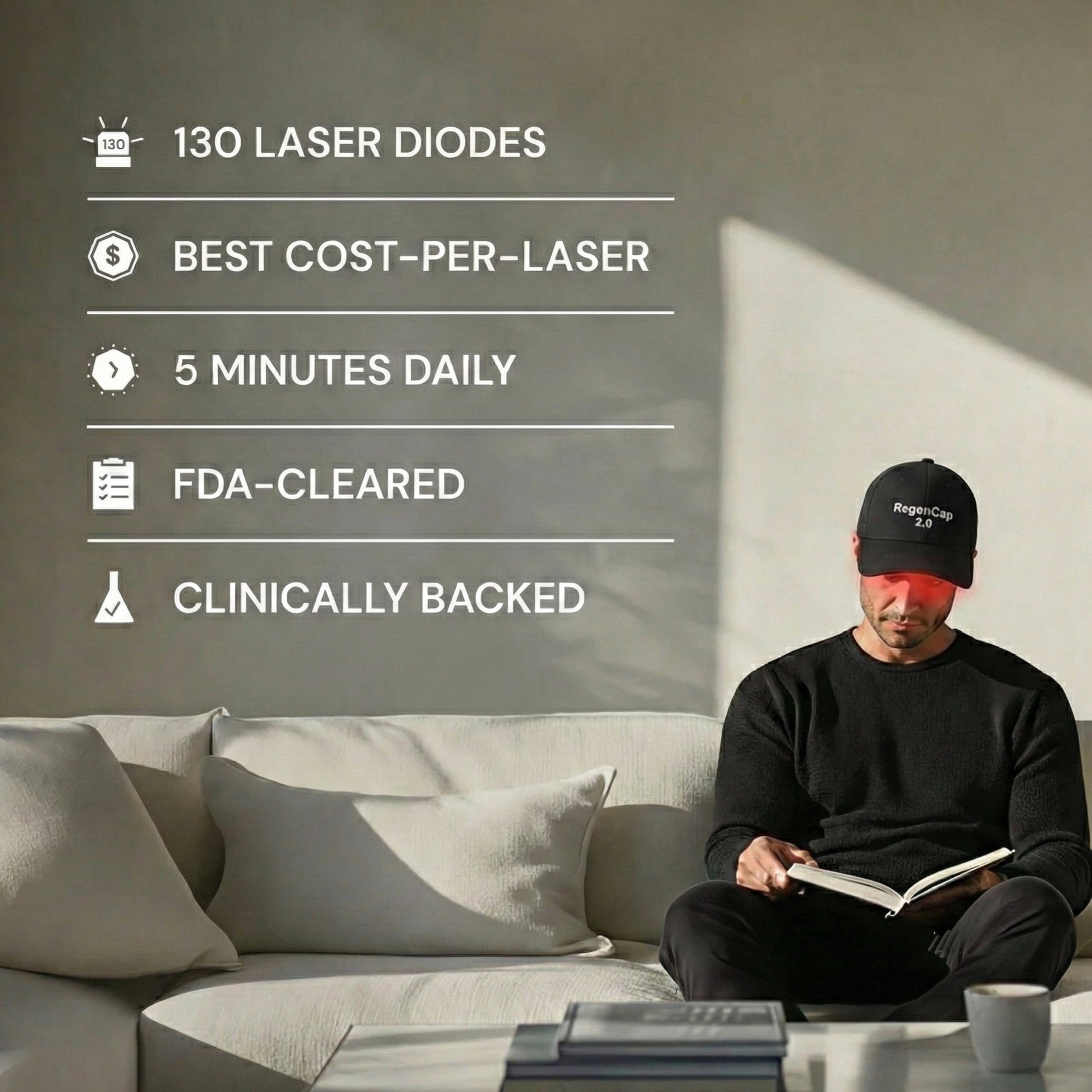 RegenCap 2.0 is advanced laser hair regrowth technology made accessible. Featuring up to 130 FDA-approved laser diodes, it delivers consistent, clinically tested light therapy to support stronger, healthier hair growth. Backed by a 90-day growth guarantee and priced up to 60% less per laser than competitors—without cutting corners.